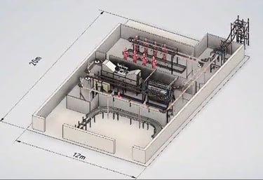 Easily fit our processing line in just 12x20 meters for streamlined operations.